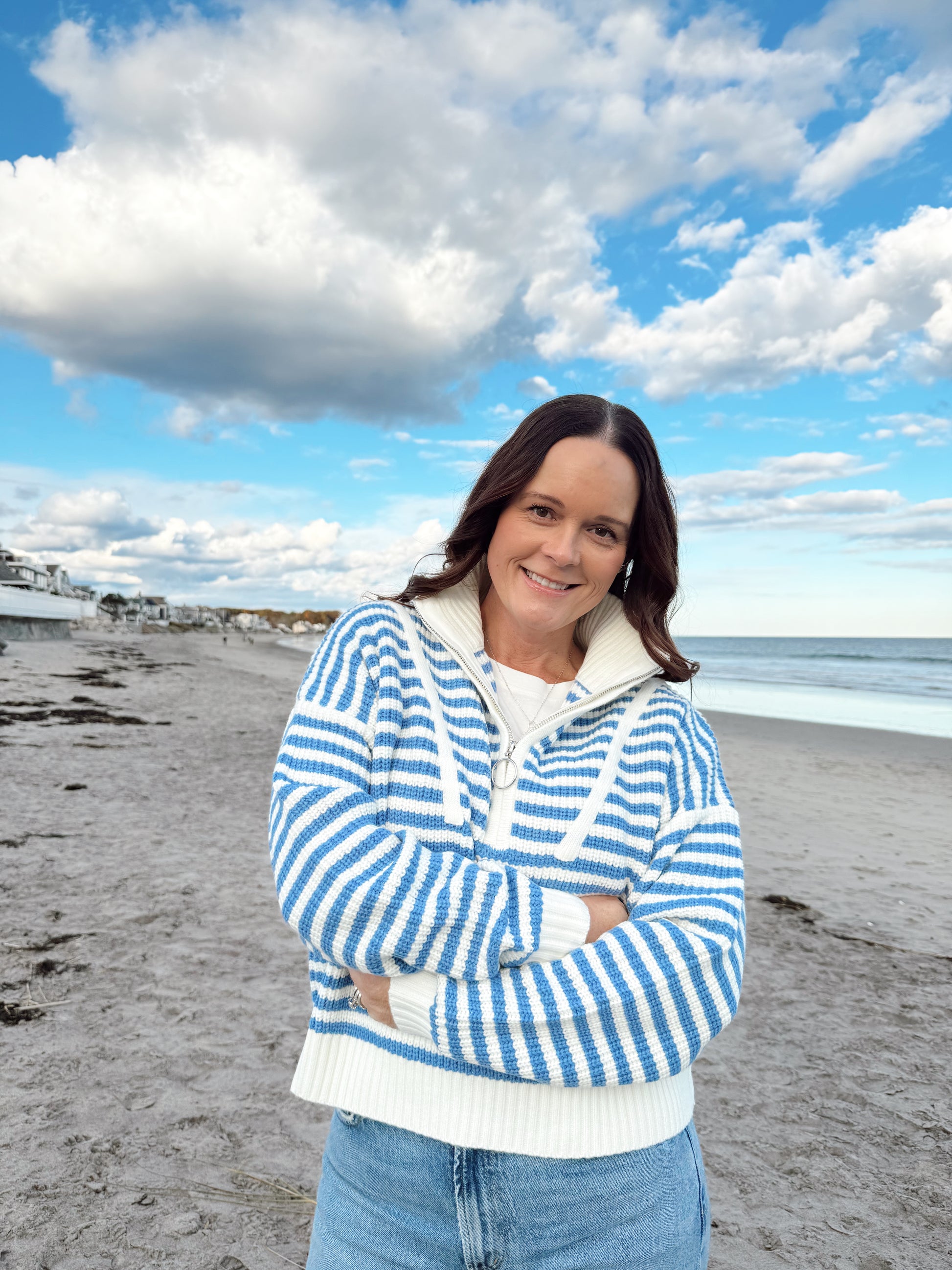 The coastal californian striped half-zip will be your go to sweater this fall season! Pair with denim for an elevated look, or leggings for a more casual on the go look...